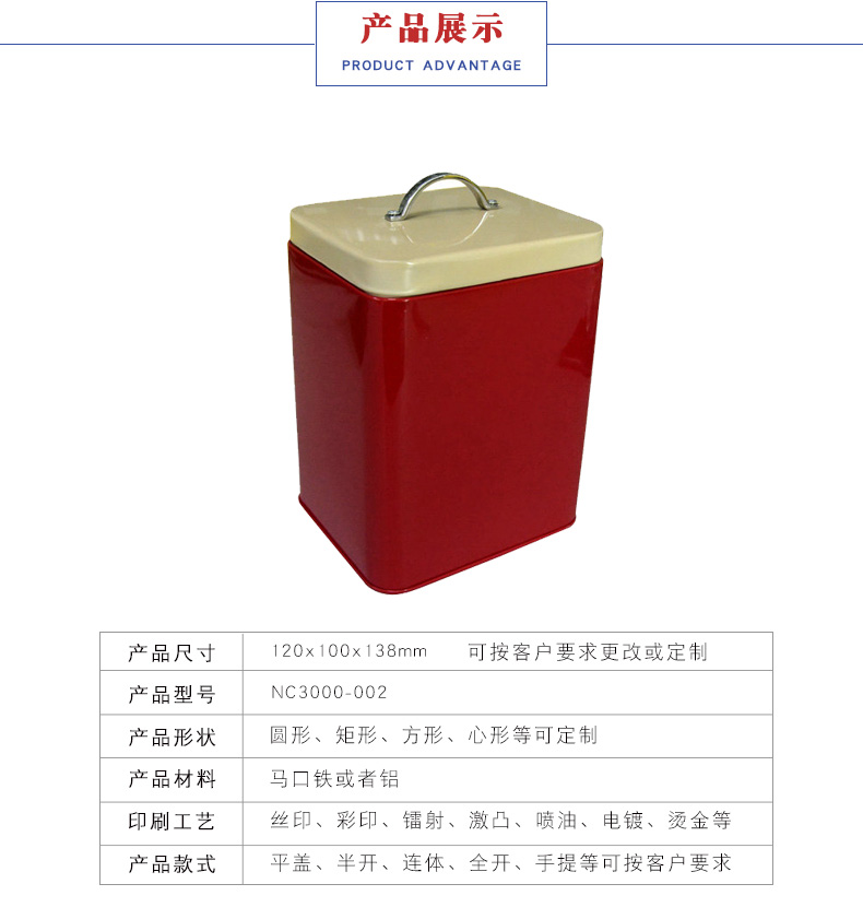 - 款号:NC3296-H35 尺寸:82*72*H35mm 材质:马口铁 logo:可定制 雕刻:可定制 用途:曲奇饼干铁盒